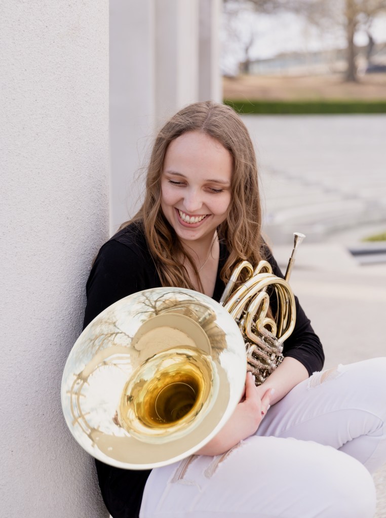 Macy loves to travel and has enjoyed attending conferences and festivals, both alone and with various ensembles. In 2023, she had the privilege of attending the British Isles Music Festival, where she created chamber music with musicians from around the world and studied with members of the London Symphony Orchestra. In 2024, she had the opportunity to participate in a masterclass at the International Women in Brass Conference held in Mito, Japan. She has also enjoyed performances with University of Arkansas ensembles at the Mid-South Horn Workshop, College Band Directors Association, SHE Festival, and student chamber tour.